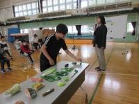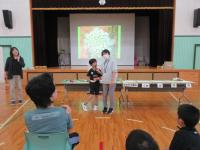 前半の活動では、花の写真を見ながらヒントをもとに野菜の名前を当てるクイズや、普段食べている野菜が「葉・茎・根・花・実」のどの部分なのかを当てるクイズを行いました。児童たちは、花の写真や野菜の模型・実物を見ながら、楽しそうにクイズに答えていました。