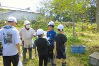 木村さんから、畑で使用する道具やぶどうの種類などの説明を聞き、最後に記念撮影!