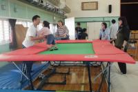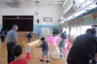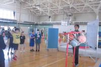22名の子どもたちが訪れ、体育館で卓球バレーやユニホック、フライングディスクなどのスポーツを楽しんだり、大型トランポリンで体を動かしたりしました。