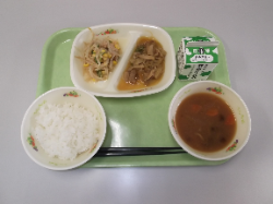 肉団子は小学部は2個、中学部は3個です。(高等部は今日から2週間実習です。)