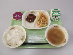 今日は栗ご飯、ハムカツ、白菜のなめ茸和え、白玉汁です。