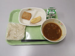 今日は照り焼きチキン、みずの炒め煮、三平汁です。