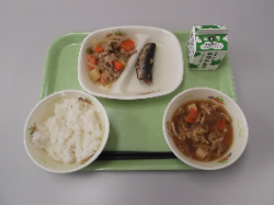 今日はイワシの味噌煮、肉じゃが、味噌けんちん汁です。